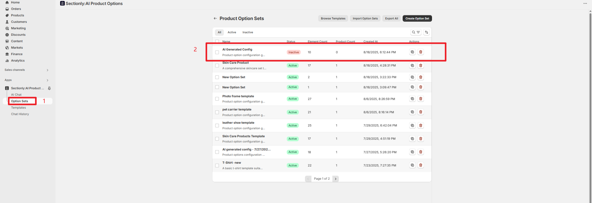 Creating Product Option Sets with AI